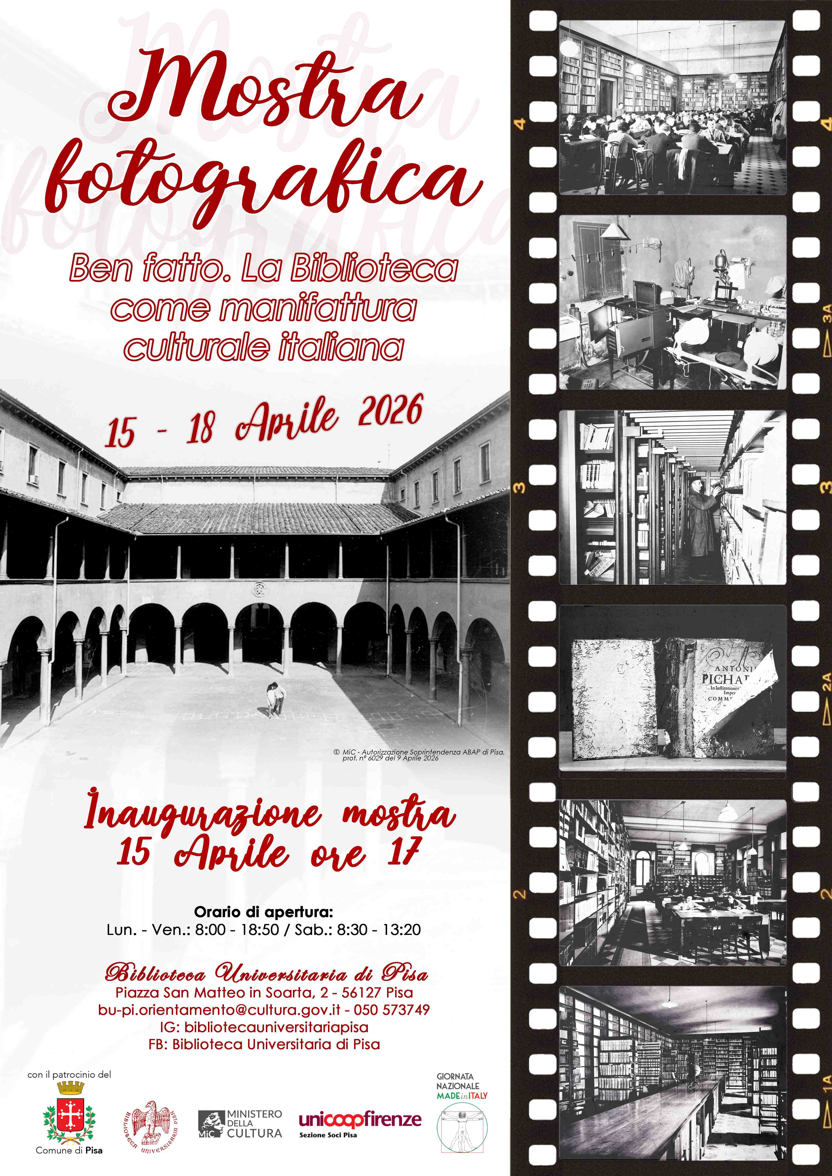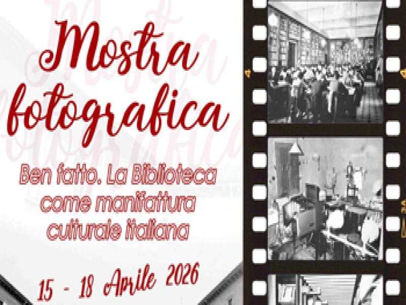 Mercoledì 15 Aprile verrà inaugurata la mostra fotografica "Ben fatto. La Biblioteca come manifattura culturale italiana", evento inserito nel programma del Ministero delle Imprese e del Made in Italy per la Giornata Nazionale del Made in Italy 2026.