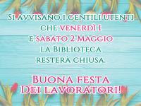 Si informano i gentili utenti che nei giorni 1 e 2 Maggio la Biblioteca resterà ...