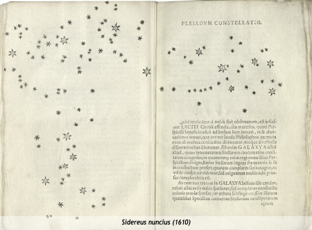 - Sidereus nuncius magna (1610): Fa parte del nostro patrimonio bibliografico la prima edizione del Sidereus Nuncius un meraviglioso trattato di astronomia. Qui Galilei individua irregolarità sulla superficie lunare (montagne e crateri), analizza la Via Lattea e si sofferma su Giove e i suoi satelliti.