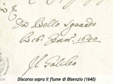Questo manoscritto è datato 16 Gennaio 1640; è un'attenta analisi richiesta a Galilei dal Granduca di Toscana in cui lo scienziato affronta le criticità del corso del fiume Bisenzio e si mostra contrario al raddrizzamento del suo corso irregolare.